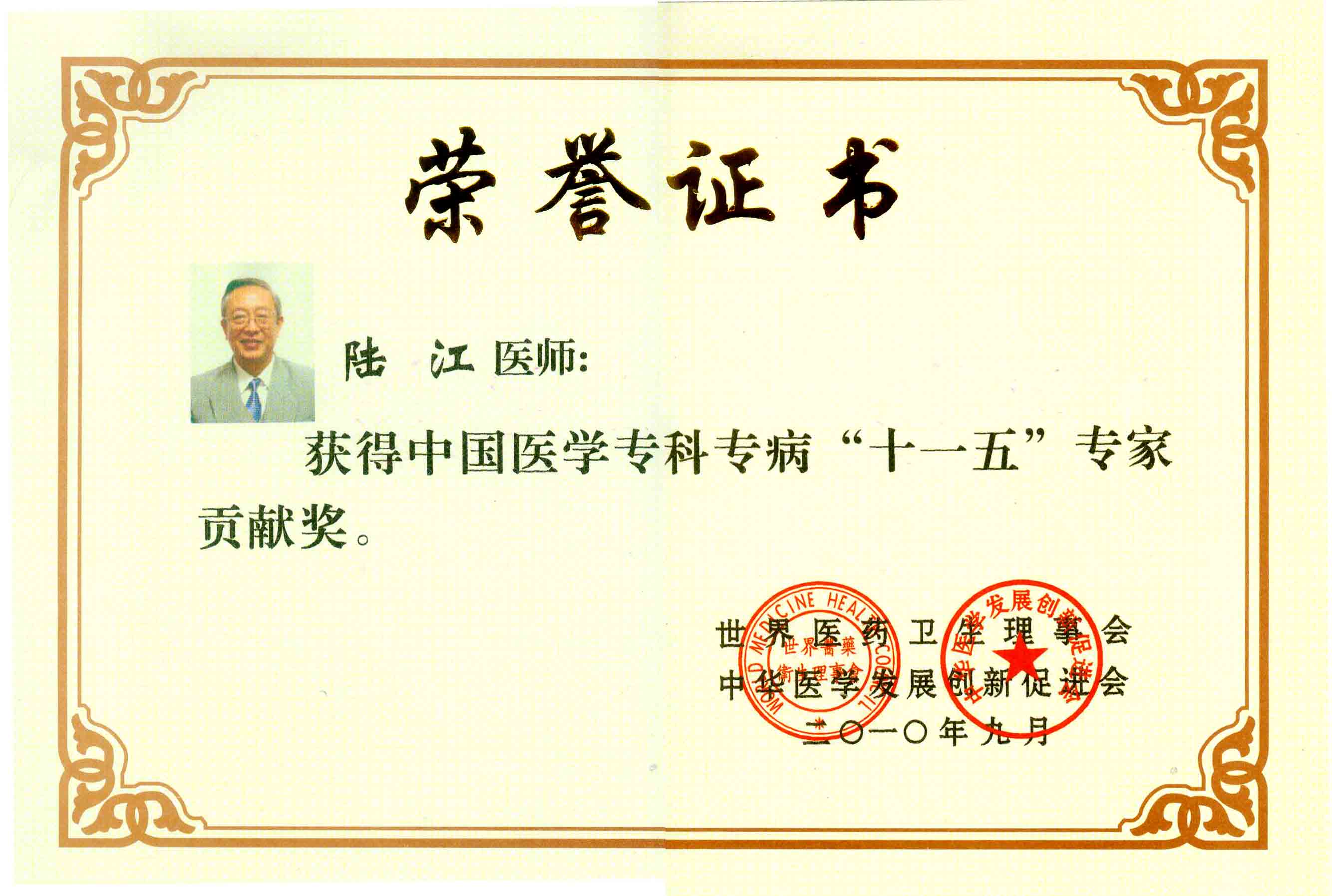 陸江獲得中國醫學專科專病優秀專家恃別貢獻獎